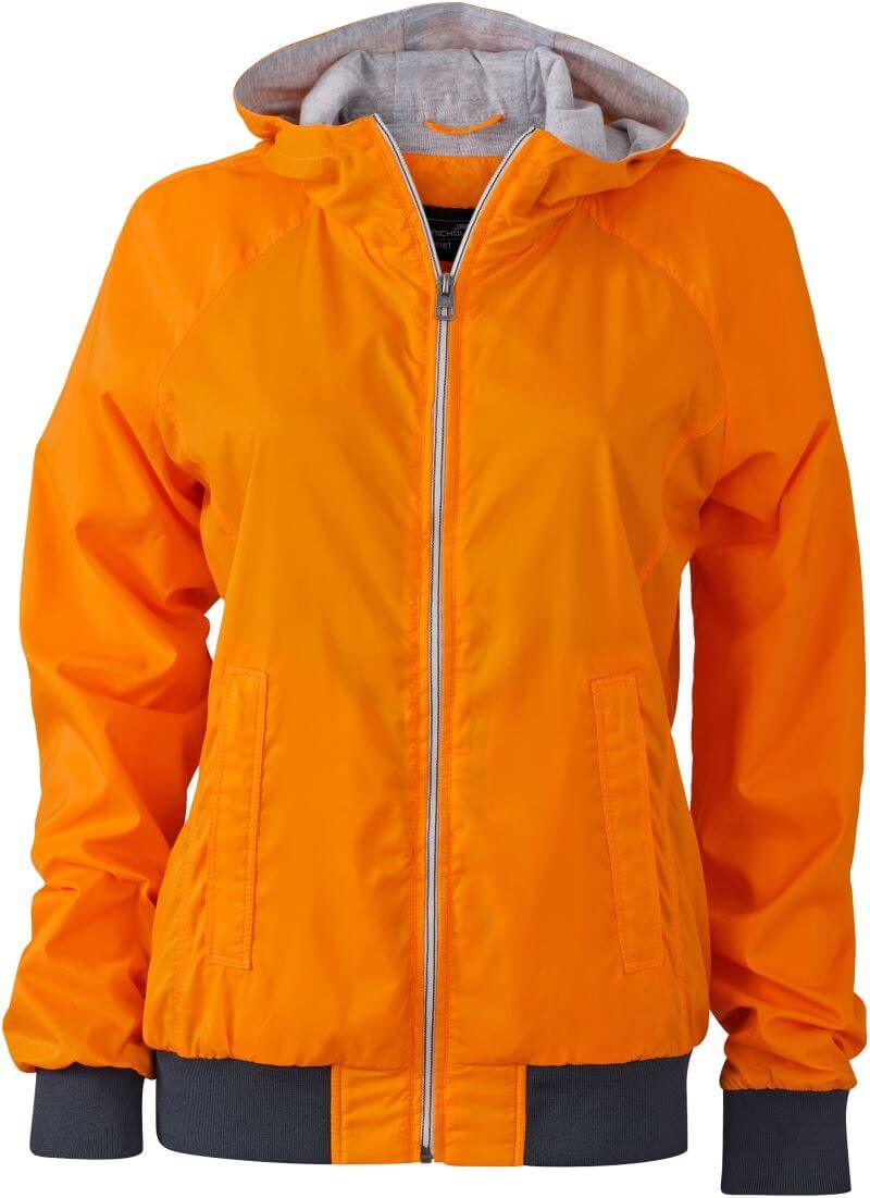 Lightweight wind and water repellent fabric, lining of soft single jersey knit cuffs on arm and waistband. 2 side pockets with zipper, hood in slightly waisted cut.